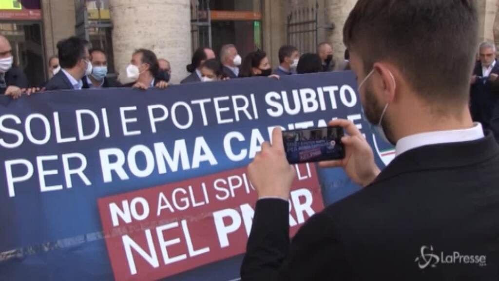 (LaPresse) Flash mob di Fratelli d’Italia davanti alla Galleria Alberto Sordi di Roma. “500 milioni di euro che sono stati stanziati nel Pnrr sono una vergogna, sono una miseria”, ha dichiarato il deputato Fdi Fabio Rampelli. “Roma non ha bisogno di elemosina, l’Italia ha bisogno di una Capitale che possa avere se possibile standard di qualità superiori a Parigi, Londra e Bruxelles”.