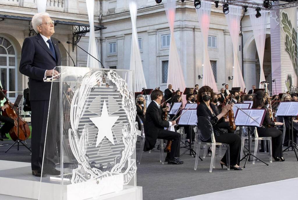 – “Contribuire a realizzare un mondo in pace, in cui i diritti della persona e dei popoli trovino piena attuazione, secondo regole assunte dalla comunità internazionale. Si tratta di diritti inalienabili e indivisibili”. Il capo dello Stato, Sergio Mattarella, apre le celebrazioni del 75esimo anniversario della Repubblica al Quirinale, accogliendo il corpo Diplomatico. Un appuntamento ancora una volta segnato dalla pandemia, che ha visto solo il tradizionale concerto eseguito dall’Orchestra Nazionale di Santa Cecilia diretta dal maestro Jakub Hruša, senza il ricevimento per le alte cariche dello Stato. L’Italia riparte, ma ancora con prudenza e gradualità, per questo anche domani giornata di festa non si svolgerà la parata a via dei Fori Imperiali e non ci sarà la tanto attesa apertura dei giorni del Colle ai cittadini, ma un discorso del presidente a chiusura delle celebrazioni, accompagnato da un filmato di RaiCultura. Quella di oggi è comunque l’occasione per fare un punto sullo stato di salute dell’Unione, sui rapporti internazionali in quella che è per l’Italia il ricordo di rinascita dal periodo buio della guerra e della dominazione fascista.