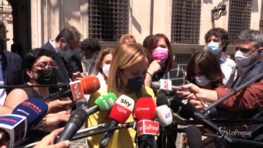 Con il premier Mario Draghi “un lungo e franco colloquio”. Lo ha dichiarato Giorgia Meloni. Tanti i temi toccati – ha detto la leader di Fratelli d’Italia – a partire dal “tema della limitazione delle libertà personali. “Io credo non possa più esserci un governo nel quale non c’è qualcuno che si assume la responsabilità di scelte che vengono fatte e che ci dica su quali basi scientifiche”. “Continuano ad esserci misure assolutamente irraggionevoli ai fini della lotta al Covid”, sostiene. “Dal tema del coprifuoco alle 4 persone a tavola all’aperto, la mascherina all’aperto quando si sa che non si ha contagio, il settore del wedding che è letteralmente in ginocchio e non viene fatto ripartire. Noi abbiamo chiesto di fermare queste misure: abbiamo detto al presidente di fermarle, di valutare se non ci siano alcune di queste scelte che sono prive di senso e allontanano i cittadini”. Sul tema dei 4 posti a tavola, Meloni ha aggiunto: “Mi pare che Mario Draghi si renda perfettamente conto” che “il tema c’è. Oggi c’è un tavolo del governo, che si vede per interpretare se stesso su queste circolari. Una cosa curiosa”, ha concluso
