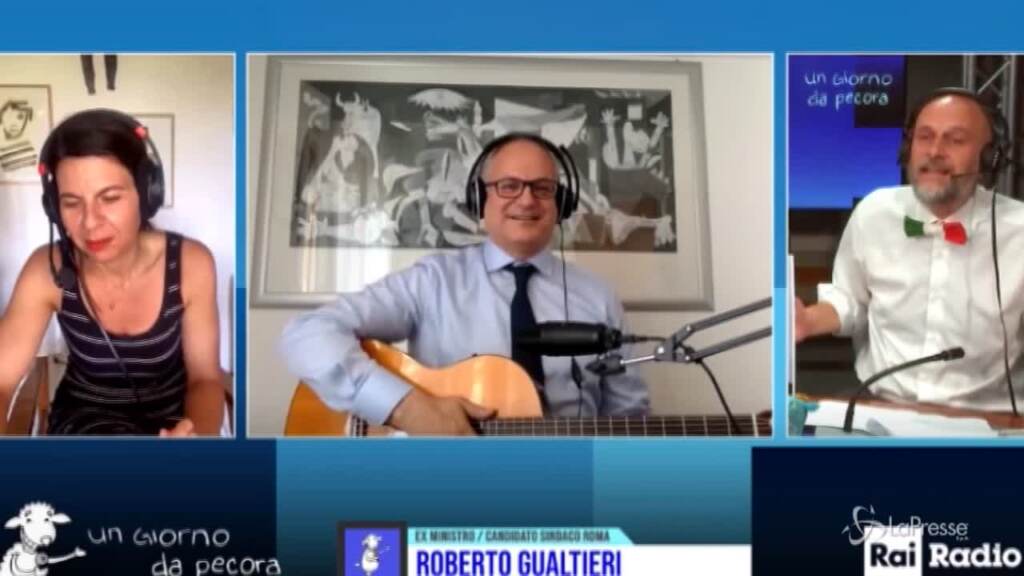 Performace di Roberto Gualtieri, ospite a ‘Un Giorno da Pecora’ su Rai Radio Uno. L’ex ministro dell’Economia e candidato alle primarie del c.sinistra a sindaco di Roma si è esibito alla chitarra, suonando ‘Vent’anni’ e ‘Zitti e Buoni’ dei Maneskin.