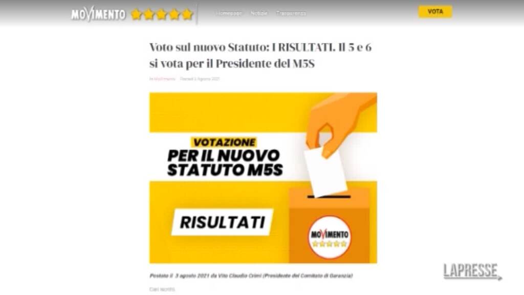 (LaPresse) Il Movimento 5 Stelle ha un nuovo statuto. L’87,3% degli oltre 113mila iscritti hanno detto sì, sulla piattaforma Skyvote, alle modifiche volute da Giuseppe Conte. Un plebiscito per l’ex premier, che ora sarà al centro di una seconda votazione, domani e dopodomani, sulla leadership del Movimento. “E’ un grande giorno, una festa di partecipazione democratica, un punto di ripartenza”, ha esultato l’avvocato pugliese che dovrà ora presentare il nuovo organigramma dei 5 stelle, come prevede il nuovo statuto.