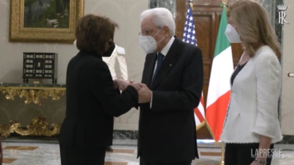 (LaPresse) Il Presidente della Repubblica, Sergio Mattarella ha ricevuto questa mattina al Quirinale Nancy Pelosi, Speaker della Camera dei Rappresentanti degli Stati Uniti d’America, intrattenendola successivamente a colazione. Pelosi è intervenuta nei giorni scorsi al preCop26 di Roma dei parlamentari. DISTRIBUTION FREE OF CHARGE – NOT FOR SALE