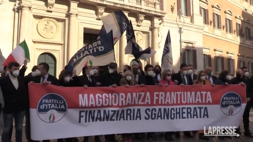 (LaPresse) Fratelli d’Italia ha organizzato un flash mob davanti alla Camera dei deputati per annunciare che i parlamentari di Giorgia Meloni invieranno una lettere al Capo dello Stato, Sergio Mattarella, per denunciare che la maggioranza sta approvando una manovra sbagliata per amore delle poltrone. “Vorremo che Mattarella intervenisse su questo tema, desse la possibilità ai cittadini di avere riposte. Esistono delle garanzie costituzionali che devono essere valide”, ha spiegato Francesco Lollobrigida, capogruppo di FdI alla Camera: “Questa manovra è sbagliata, senza visione e prospettiva”.