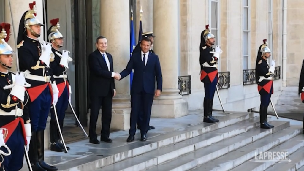 (LaPresse) Calorosa accoglienza per Mario Draghi all’Eliseo. Ad attenderlo il presidente francese Emmanuel Macron. Tra i due leader un lungo abbraccio e molti sorrisi, poi le classiche foto di rito con strette di mano e pacche sulla spalla. Giovedì il presidente del Consiglio è atteso all’Ocse per il discorso di apertura della conferenza ministeriale.