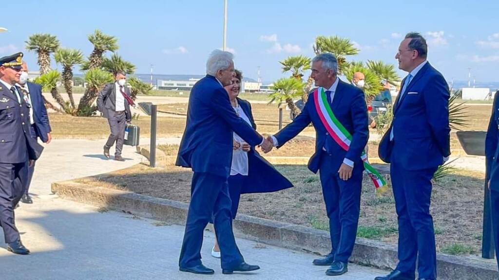 Un insolito omaggio ha accolto l’arrivo del capo dello stato: l’Associazione nazionale costruttori edili (Ance) ha deciso di omaggiare Mattarella realizzando una grande aiuola fiorita tricolore all’interno di una rotatoria che è posizionata lungo la strada tra l’aeroporto militare e la foresteria dove il presidente alloggerà.