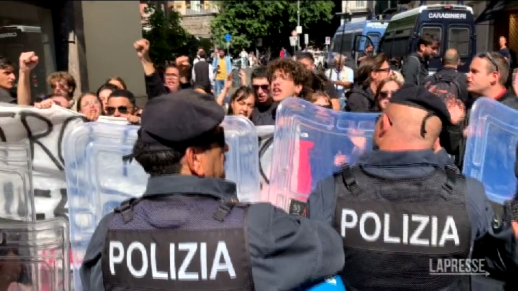 (LaPresse) Un gruppo di circa 40 giovani ha bloccato la strada a piazza dei Martiri in attesa dell’arrivo di Giorgia Meloni, leader di Fratelli d’Italia, all’incontro con Confindustria Napoli. I ragazzi in protesta hanno intonato cori contro Meloni, l’alternanza scuola lavoro e il fascismo.