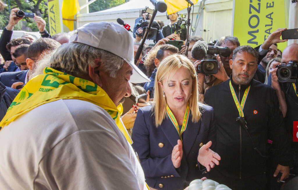 “Se dovessimo essere chiamati a governare questa nazione, vorrei fosse chiaro e subito che abbiamo bisogno di dare risposte chiare e immediate ai problemi della nazione” dice Meloni dal palco. “E’ un momento difficile per il sistema produttivo e agroalimentare, vengo qui a dare questo messaggio: abbiamo fatto campagna elettorale dicendo che ci siamo dati come grande obiettivo modificare il rapporto Stato-cittadini e Stato-imprese. La nostra bussola è non disturbare chi vuole fare, chi produrre ricchezza, chi vuole assumere” dice Giorgia Meloni dal palco. “Ci hanno detto che la povertà si poteva abolire con decreto ma la ricchezza la fanno le imprese con i lavoratori” dice ancora la leader di FdI.
