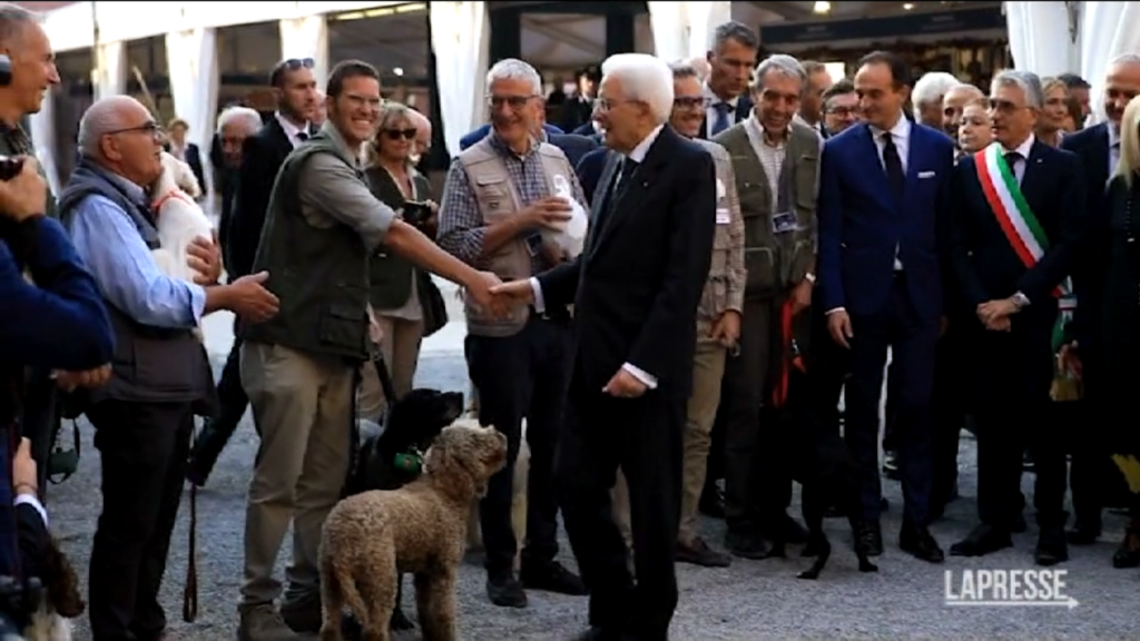 (Alba) Il Presidente della Repubblica Sergio Mattarella in visita ad Alba (Cuneo) in occasione del centenario della nascita dello scrittore Beppe Fenoglio, del Bicentenario della nascita del deputato e ministro Michele Coppino e della giornata inaugurale della 92a Fiera internazionale del tartufo bianco d’Alba. Per l’occasione il Capo dello Stato ha incontrato anche i ‘trifolau’ e i loro cani da tartufo.
