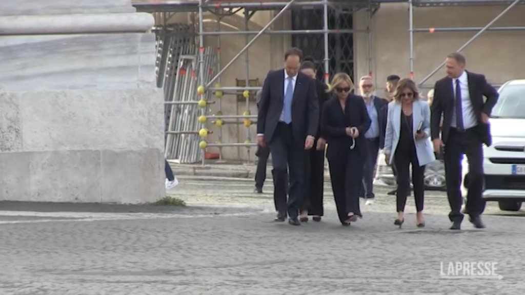(LaPresse) La delegazione di centrodestra al Quirinale per le consultazioni con Mattarella. Silvio Berlusconi e Antonio Tajani sono arrivati per primi e sono giunti in auto assieme ai capigruppo Licia Ronzulli e Alessandro Cattaneo. Gli altri leader sono invece giunti a piedi. La premier in pectore, Giorgia Meloni è arrivata accompagnata da Luca Ciriani e Francesco Lollobrigida mentre al fianco di Matteo Salvini ci sono i capigruppo Riccardo Molinari e Massimiliano Romeo.