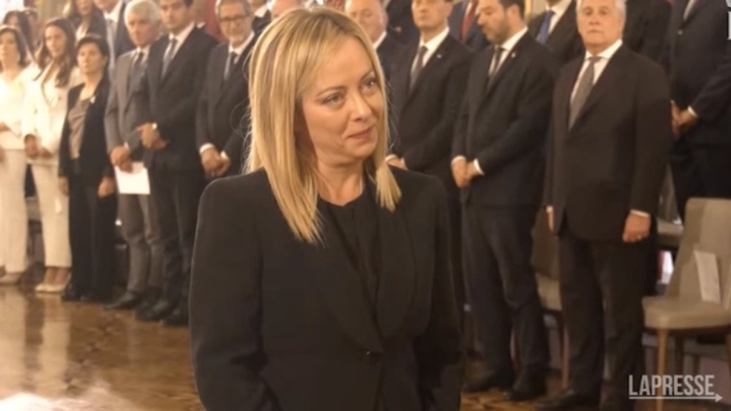 Emozionata ma ferma davanti al presidente della Repubblica, Sergio Mattarella, mentre recita a memoria la formula di rito: “Giuro di essere fedele alla Repubblica, di osservarne lealmente la Costituzione e le leggi e di esercitare le mie funzioni nell’interesse esclusivo della Nazione”. Giorgia Meloni non si è fatta trovare impreparata nel salone delle Feste del Quirinale, prima a giurare nelle mani del capo dello Stato come presidente del Consiglio.