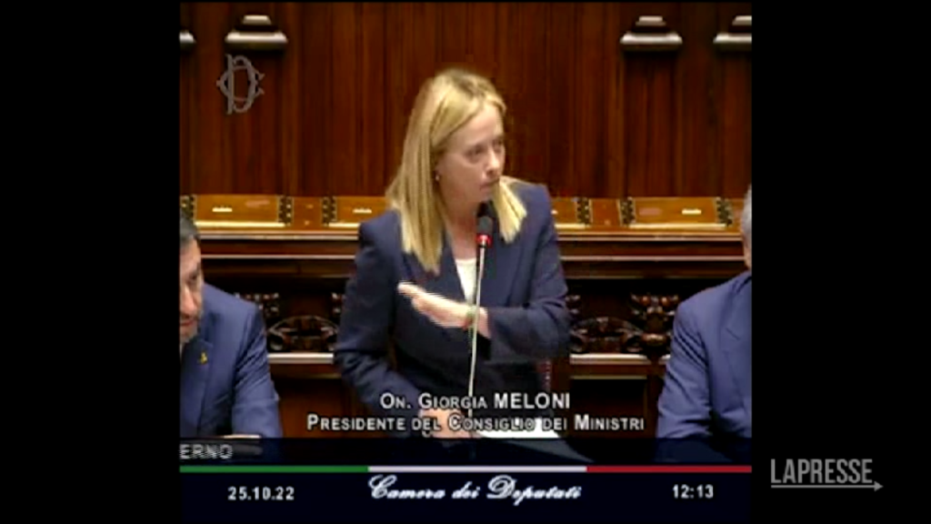 (LaPresse) La presidente del Consiglio Giorgia Meloni, nell’aula della Camera per il suo discorso programmatico, arrivando alla conclusione si rivolge ai deputati del centrodestra con un cenno della mano e stoppa l’applauso pronto a partire dai banchi del centrodestra. Al cenno torna il silenzio.