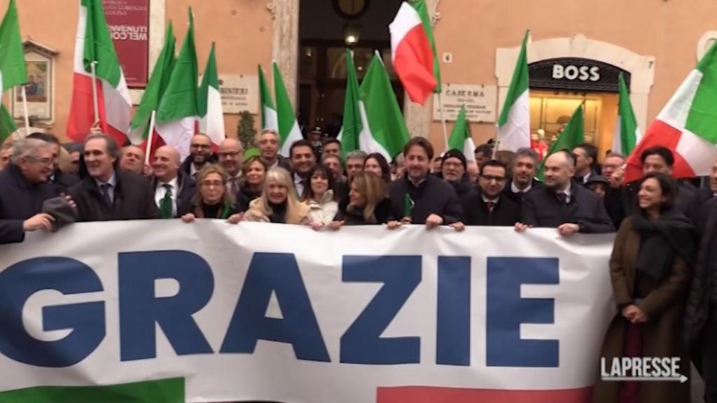 Con un flash mob organizzato a Roma in Piazza San Lorenzo in Lucina di fronte Comando Provinciale dei Carabineri, i parlamentari di Fratelli d’Italia hanno voluto ringraziare l’Arma dopo l’arresto del boss mafioso Matteo Messina Denaro. “Lo Stato c’è. Con l’arresto di Matteo Messina Denaro la lotta alla mafia non finisce. Vinciamo, soprattutto, nella determinazione di inseguire e catturare un latitante per trent’anni”, ha dichiarato il capogruppo alla Camera, Tommaso Foti aggiungendo: “Un ringraziamento profondo a questo governo e a tutti coloro i quali si sono impegnati nella ricerca di questo boss, in particolare all’Arma dei Carabinieri, alle Forze di Polizia e magistrati che non hanno mai ceduto di fronte a quella che sembrava una primula rossa”. Durante il presidio è stato srotolato uno striscione con la scritta “grazie” e sventolato bandiere tricolore.