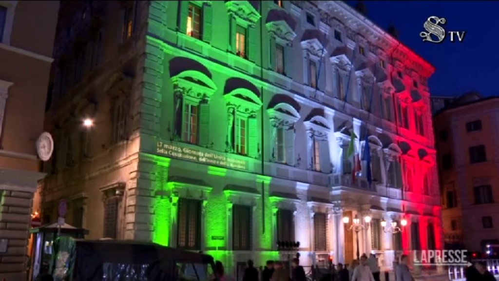 La facciata Palazzo Madama, sede del Senato a Roma, è diventata tricolore in occasione del 162esimo anniversario della Giornata dell’Unità nazionale, della Costituzione, dell’Inno e della Bandiera. “I valori costituzionali ci garantiscono le risorse morali necessarie a fronteggiare le sfide della contemporaneità”, ha affermato il presidente della Repubblica Sergio Mattarella che oggi si è recato all’Altare della Patria.