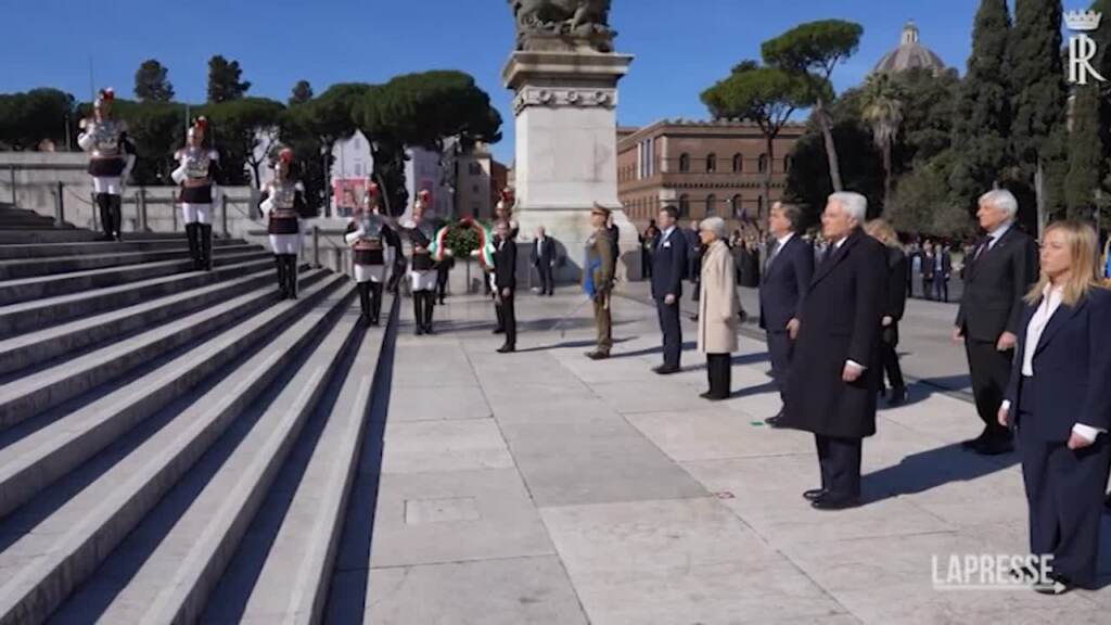 (LaPresse) Il Presidente della Repubblica, Sergio Mattarella, ha deposto una corona d’alloro sulla tomba del Milite Ignoto, all’Altare della Patria, in occasione della Giornata dell’Unità nazionale, della Costituzione, dell’inno e della bandiera. Alla cerimonia erano presenti anche la presidente del Consiglio Giorgia Meloni, il presidente del Senato Ignazio La Russa, il vicepresidente della Camera Fabio Rampelli e la presidente della Corte Costituzionale Silvana Sciarra. “La Costituzione, l’Inno degli italiani e la Bandiera sono i riferimenti che ci guidano nell’impegno comune di consolidare un’Italia fondata su pace, libertà e diritti umani”, ha ricordato il capo dello Stato.