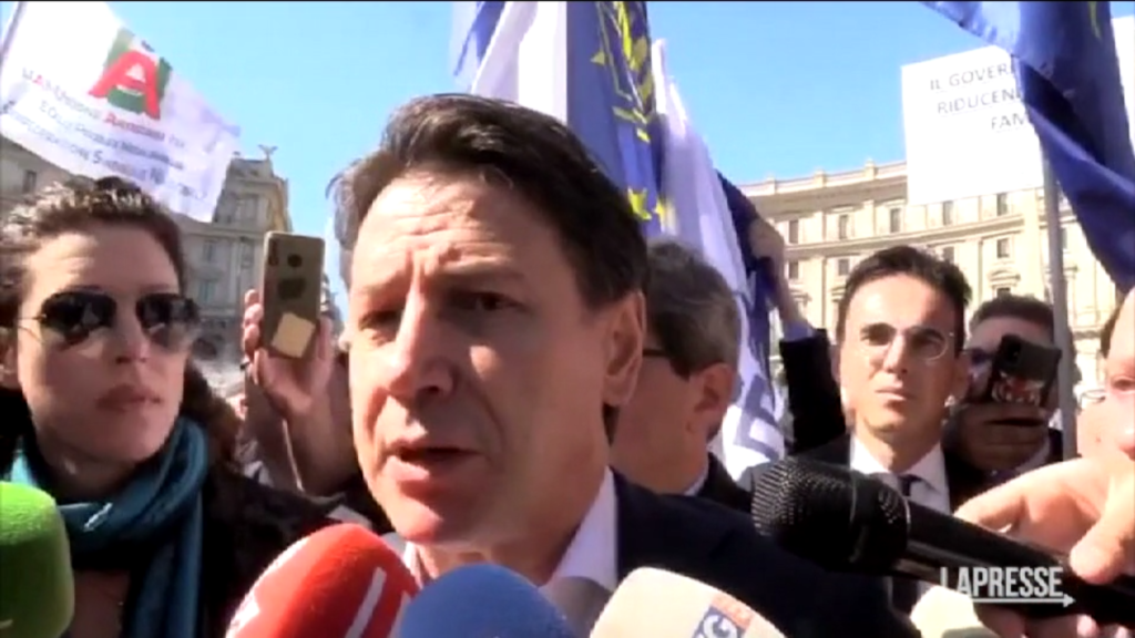 Il presidente del Movimento 5 stelle Giuseppe Conte a piazza della Repubblica, a Roma, dove è in corso la manifestazione organizzata dagli esodati del superbonus. Sull’invio delle armi all’Ucraina con il Pd “non si rompe nulla perché la posizione del Pd è stata sempre di grande convinzione per quanto riguarda questa strategia militare. Il problema non è il rapporto con il Partito democratico”, chiarisce l’ex premier che aggiunge: “L’escalation militare non ha più fine, noi vogliamo un percorso negoziale di pace e l’Italia deve essere in prima fila”.
