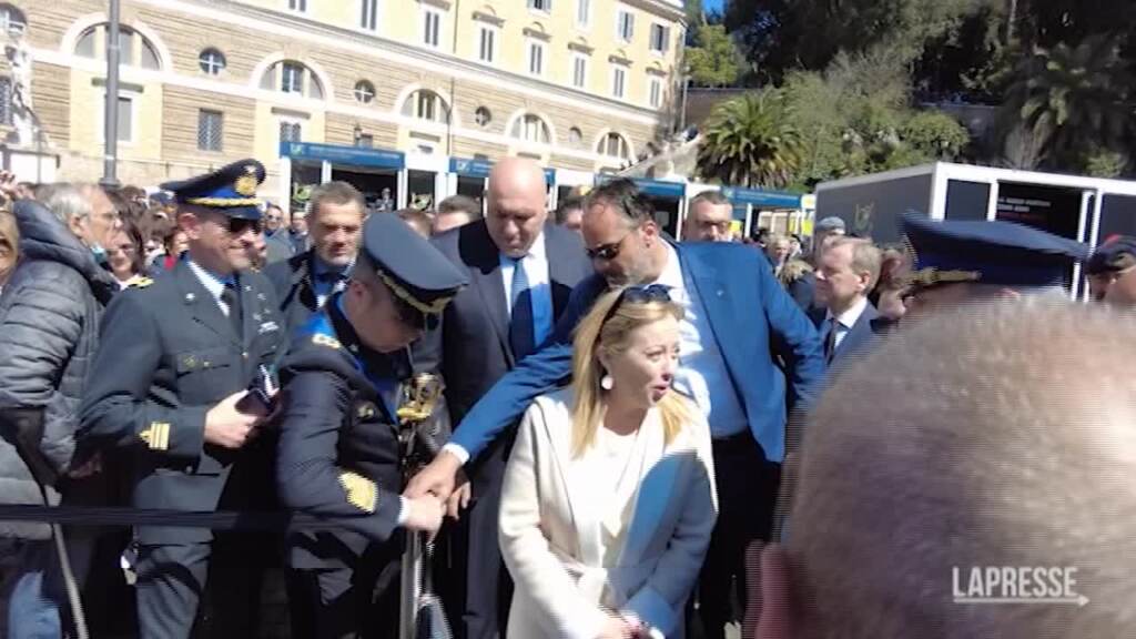 Visita allo spazio espositivo di Piazza del Popolo, a Roma, per la presidente del Consiglio Giorgia Meloni dopo la cerimonia per i 100 anni dalla fondazione dell’Aeronautica Militare Italiana. Tra i vari velivoli mostrati nel centro di Roma c’è un F35 nel cui abitacolo la premier ha scelto di entrare, assistita da alcuni membri delle Forze armate. “L’Aeronautica Militare è uno dei grandi fiori all’occhiello di questa nazione, una grande ambasciatrice della nostra credibilità, del nostro coraggio, della nostra serietà e della nostra umanità”, ha dichiarato poco dopo Meloni ai cronisti.
