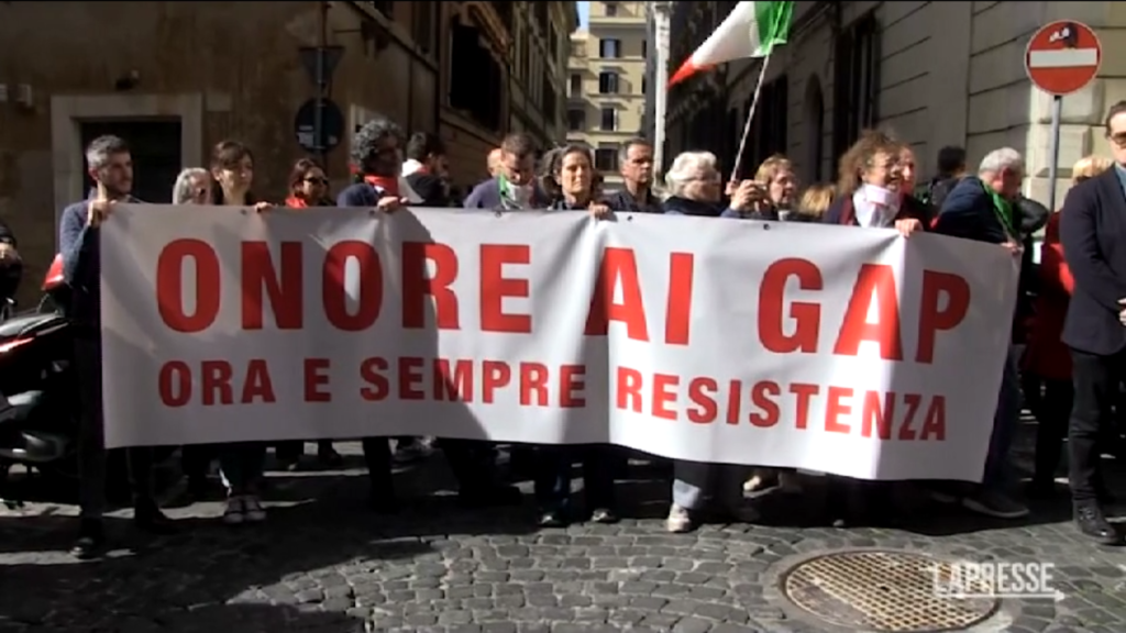 “Siamo qui in risposta alle menzogne di La Russa, per dire che la storia non si riscrive ma si racconta.La Russa non ha scuse”, dice Angelo Nazio, 98 anni, militante dei ‘Gruppi di azione patriottica’. “Avrei preferito morire piuttosto che sentire quelle parole. Via Rasella è stato un atto di guerra, perché quello era un battaglione ben munito di armi. Loro facevano barbarie rastrellavano gente disarmata, di notte”, prosegue emozionato. “È un’offesa a chi ha dato la vita per ridare dignità all’Italia, mentre i loro preferiti, i due briganti e criminali, Mussolini e Hitler, hanno portato in territorio italiano eserciti di ogni risma”, conclude Nazio.