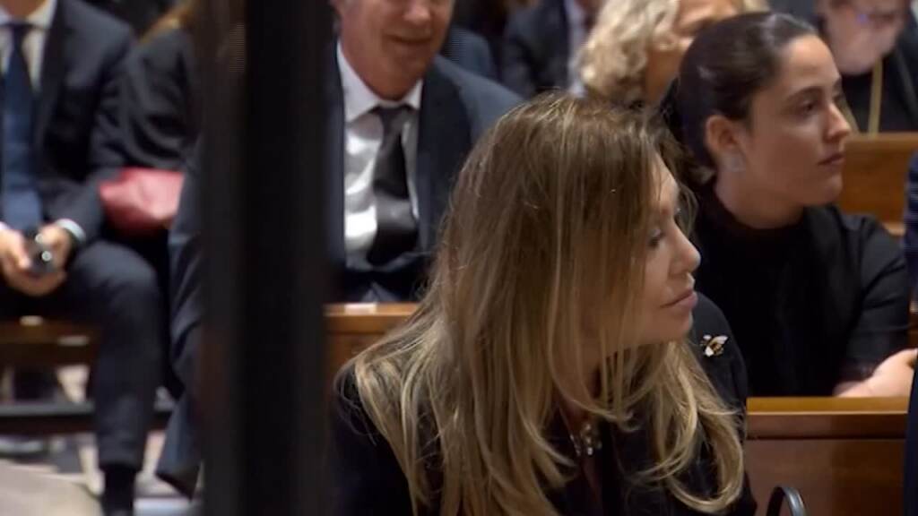 Veronica Lario è presente nel Duomo di Milano. La ex moglie di Silvio Berlusconi è vestita di nero, con un giro di perle intorno al collo ed una spilla. Siede al suo posto in seconda fila, vicino alla moglie del figlio Luigi, Federica, e a uno dei nipoti.