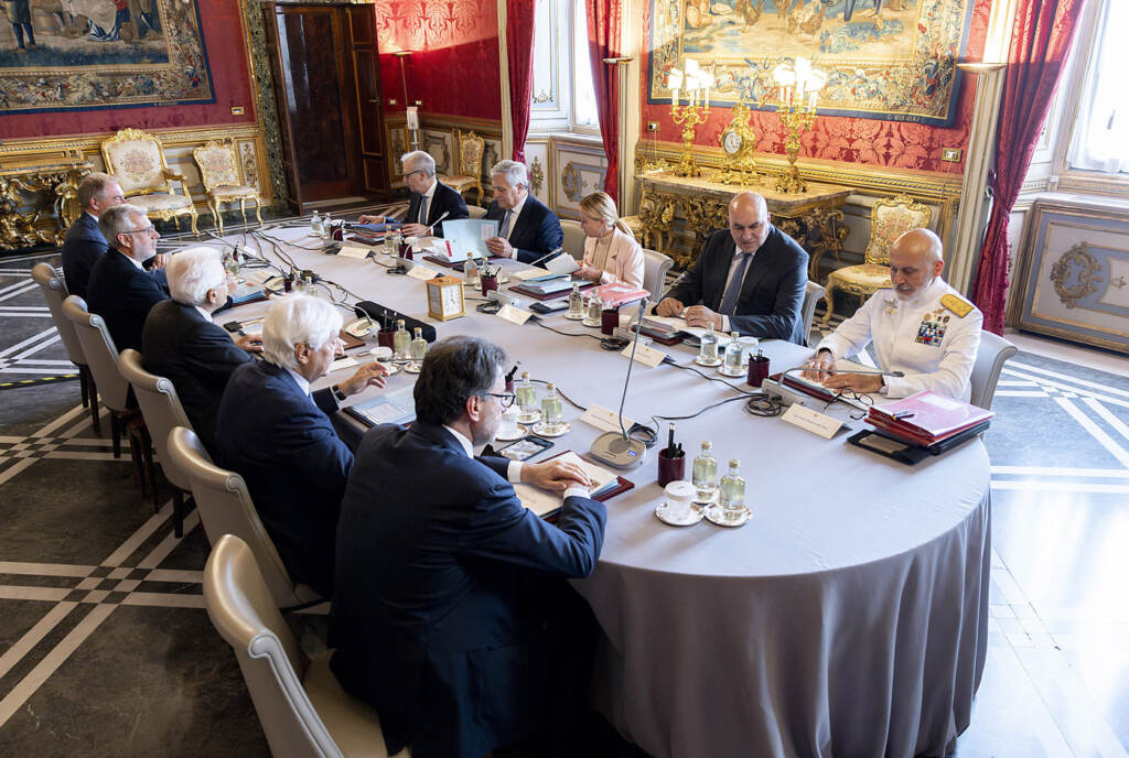Si è conclusa la riunione al Palazzo del Quirinale del Consiglio supremo di difesa, presieduto dal Presidente della Repubblica, Sergio Mattarella. Alla riunione hanno partecipato: il Presidente del Consiglio dei ministri, Giorgia Meloni; il Ministro degli affari esteri e della cooperazione internazionale, Antonio Tajani; il Ministro della difesa, Guido Crosetto; il Ministro dell’economia e delle finanze, Giancarlo Giorgetti; il Ministro delle imprese e del made in Italy, Adolfo Urso; il Capo di Stato maggiore della difesa, Amm. Giuseppe Cavo Dragone. Erano altresì presenti il Sottosegretario di Stato alla Presidenza del Consiglio dei ministri Alfredo Mantovano; il Segretario generale della Presidenza della Repubblica, Ugo Zampetti; il Consigliere del Presidente della Repubblica per gli Affari del Consiglio supremo di difesa, Francesco Saverio Garofani.