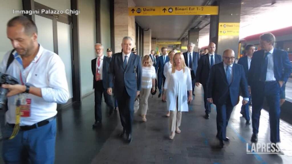 (LaPresse) – A Roma, alla stazione Termini, l’arrivo del presidente del Consiglio Giorgia Meloni pre prendere il treno Frecciarossa diretto Roma-Pompei, che fa oggi la sua corsa inaugurale. Sul Frecciarossa 1000 anche l’Amministratore delegato del Gruppo FS, Luigi Ferraris, il ministro della Cultura, Gennaro Sangiuliano e il direttore generale Musei del ministero della Cultura, Massimo Osanna e alcuni studenti universitari della facoltà di Archeologia. Il nuovo servizio ferroviario nato dalla collaborazione tra il Ministero della Cultura e Ferrovie dello Stato italiane, che collegherà senza cambi la Capitale e uno dei siti archeologici più famosi al mondo, sarà effettuato con il Frecciarossa 1000 ogni terza domenica del mese. DISTRIBUTION FREE OF CHARGE – NOT FOR SALE