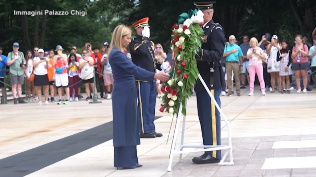 Seconda giornata della visita di Giorgia Meloni a Washington, Stati Uniti. La presidente del Consiglio è andata in visita al Cimitero militare di Arlington, dove ha assistito alla cerimonia del Cambio della Guardia. In seguito la premier ha reso omaggio alla Tomba del Milite Ignoto. Meloni, in precedenza, ha avuto un incontro bilaterale con il presidente americano Joe Biden. Durante il colloquio sono stati toccati tanti temi, dai migranti (e i rapporti con la Tunisia) all’Ucraina, passando per i legami di Roma con Pechino, fino alla crisi climatica.