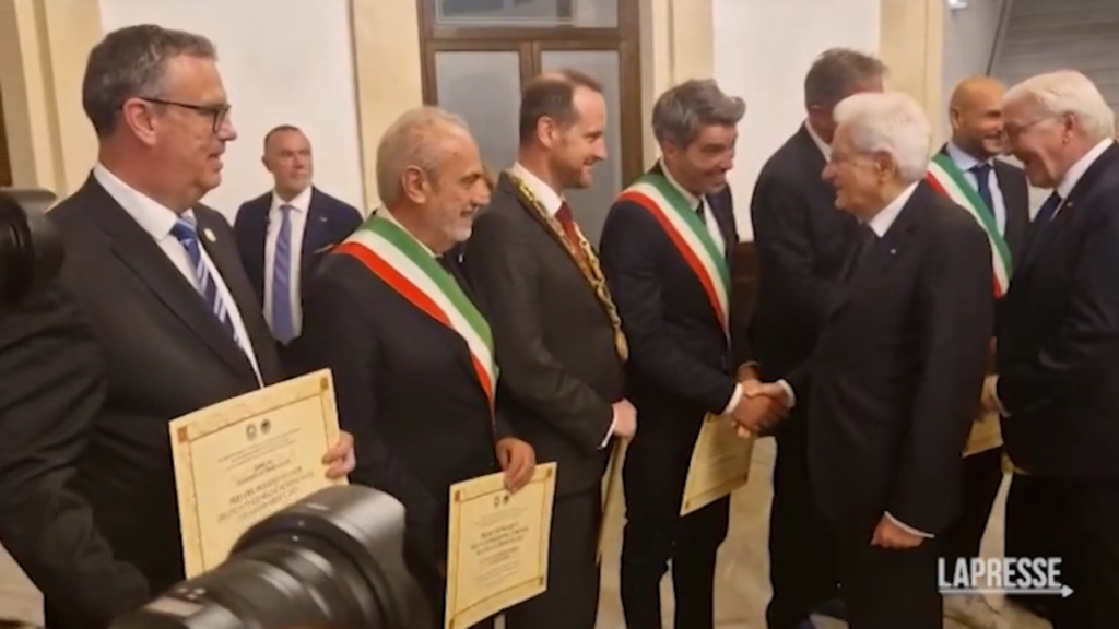 Consegnati, alla presenza del Presidente della Repubblica Sergio Mattarella e del Presidente della Repubblica federale tedesca Frank Walter Steinmeier, sul palco del teatro comunale di Ortigia, i riconoscimenti ai Comuni vincitori della seconda edizione del ‘Premio dei presidenti per la cooperazione comunale fra Italia e Germania’. Due le categorie del premio, attribuiti a piccoli e grandi Comuni. Per quel che riguarda i paesi di piccole dimensioni al terzo posto di sono classificati Castelnovo ne’ Monti, in provincia di Reggio Emilia e Kahla; al secondo Oliveri, in provincia di Messina e Breitnau; e al primo posto il duo Passignano sul Trasimeno, in provincia di Perugia, e Eltville am Rhein. Per quel che riguarda i grandi comuni si classificano primi Brescia e Darmstadt, seuguiti da Faenza e Schwäbisch Gmünd. Istituito nel 2020, in occasione della visita a Milano del Presidente Federale tedesco Frank-Walter Steinmeier, e assegnato per la prima volta nel 2021, il riconoscimento è volto a valorizzare e sostenere lo sviluppo di forme innovative di gemellaggio e premia le città e i Comuni tedeschi e italiani uniti da accordi di gemellaggio o di partenariato che presenteranno progetti volti a promuovere prospettive condivise attraverso gli scambi reciproci, in particolare tra le giovani generazioni; l’impegno civico; la sostenibilità; l’integrazione europea; l’innovazione; la digitalizzazione; la cooperazione in ambito culturale; la coesione sociale e l’inclusione. Come avvenuto nella precedente edizione, l’iniziativa ha una dotazione complessiva di 200mila euro, per premi fino a 50mila euro a progetto, finanziati in parti uguali da entrambi i Governi. Mentre i Comuni saranno liberi di determinare la dimensione finanziaria e la ripartizione delle spese complessive del progetto presentato, il co-finanziamento previsto dal Premio è paritetico e sarà pertanto attribuito per il 50 per cento al Comune italiano e per il 50 per cento al Comune tedesco, i quali saranno direttamente responsabili per l’uso dei fondi rispettivamente ricevuti.