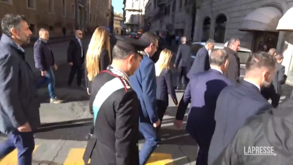 Fuoriprogramma per la Presidente del Consiglio Giorgia Meloni e per il Presidente del Senato Ignazio La Russa al termine della cerimonia in occasione del Giorno dell’Unità Nazionale e Giornata delle Forze Armate in Piazza Venezia a Roma. Dopo la deposizione della corona di fiori sull’altare della patria assieme al Presidente della Repubblica Mattarella, Meloni e La Russa sono entrati in un bar a pochi passi dal monumento, in Via del Plebiscito, per prendere un caffè. L’incontro informale è durato circa 20 minuti.
