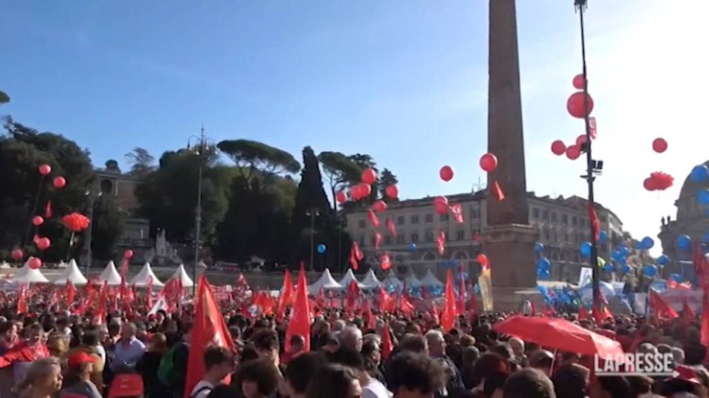 Una Piazza del Popolo piena di lavoratori Cgil e Uil in occasione dello sciopero indetto dalle due sigle sindacali. È la risposta alle polemiche nate dalle critiche e dalla scelta della precettazione da parte del ministro dei Trasporti Salvini. “Una risposta di democrazia a chi fa il bullo istituzionale” ha detto il segretario Uil Pierpaolo Bombardieri. “Se il governo è capace di ascoltare cambi idea, smetta di fare cavolate e ritiri la precettazione” ha aggiunto il leader Cgil Maurizio Landini.