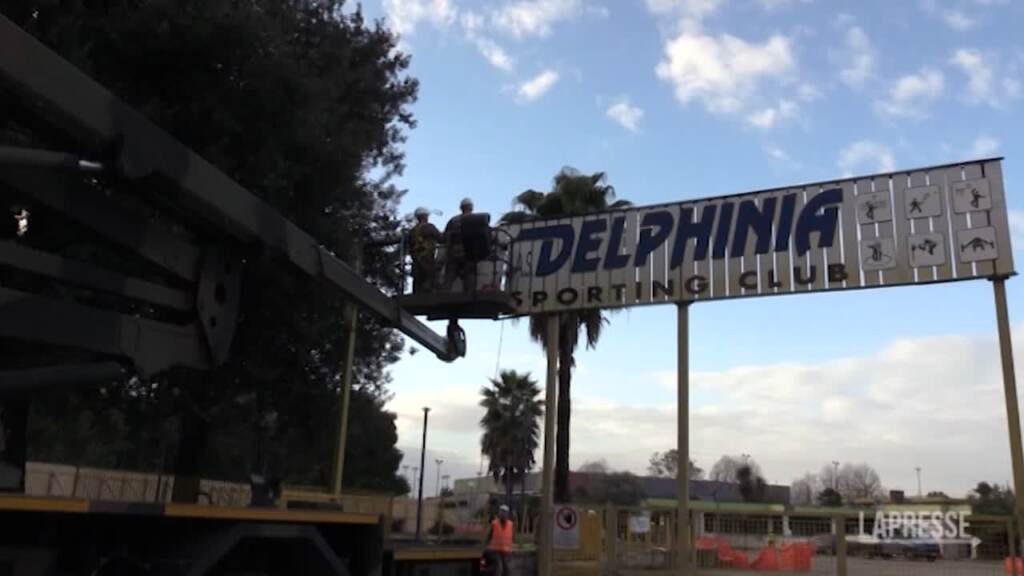 Rimossa a Caivano l’insegna del Centro Delphinia, abbandonato e vandalizzato, luogo simbolo degli ormai tristemente famosi episodi di violenza. Presente anche il ministro dello Sport, Andrea Abodi. “Siamo in anticipo sul cronoprogramma entro maggio sarà inaugurato nuovo centro polifunzionale”, ha detto Abodi.