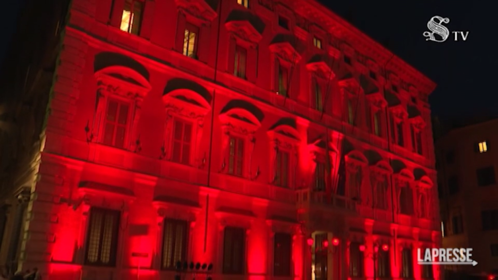 Il Senato della Repubblica aderisce alla Giornata mondiale contro l’Aids. La facciata di Palazzo Madama è illuminata con il colore rosso dal tramonto di venerdì 1° dicembre fino all’alba di sabato 2.