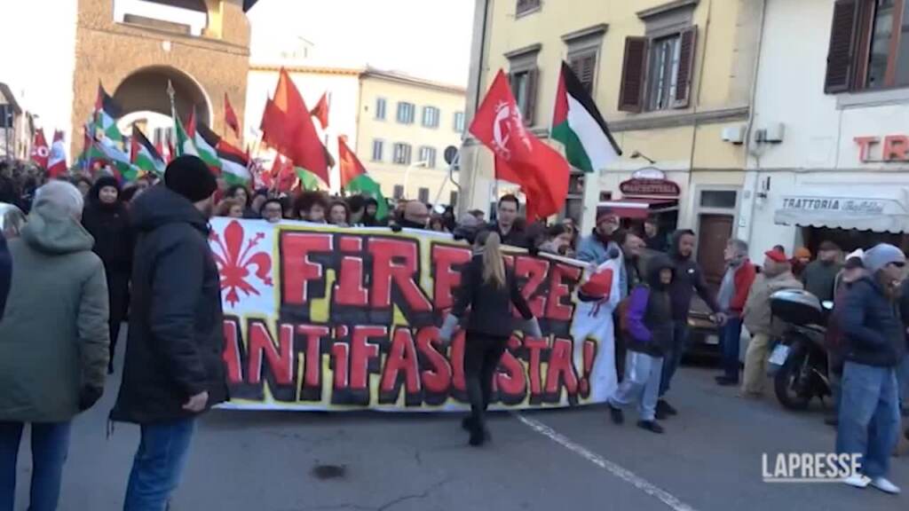 Corteo antifascista contro il raduno del gruppo europeo Identità e Democrazia a Firenze. La manifestazione è stata organizzata da Firenze Antifascista per opporsi all’evento Free Europe cui ha partecipato la Lega di Matteo Salvini e i suoi alleati in unione europea. Il corteo partito da Porta a Prato ha sfilato lungo il centro del capoluogo toscano per arrivare in Piazza dell’Indipendenza. Durante la manifestazione cori contro il governo, cori per la Palestina e anche il lancio di alcuni palloncini pieni di vernice colorata contro la sede di Fratelli d’Italia. “Questa giornata è molto importante perché rispondiamo a quella che consideriamo una provocazione cioè utilizzare Firenze come vetrina per radunare la destra xenofoba e razzista di tutta Europa”, spiega Davide Pinelli di Firenze Antifascista. “Non è soltanto uno scontro di valori ma anche di merito perché ci permette di dire che le destre hanno tradito tutte le promesse elettorali che avevano fatto. Si rivelano per quello che sono cioè dei venditori di fumo”.