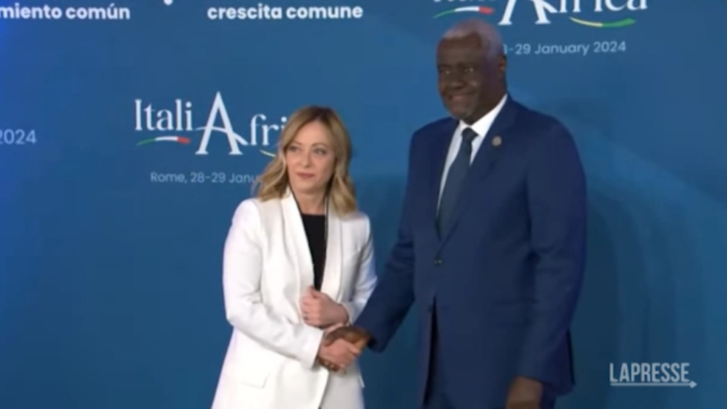 C’era anche Moussa Faki Mahamat, il presidente della Commissione dell’Unione africana al vertice Italia-Africa in Senato. Dandogli il benvenuto la premier Giorgia Meloni ha scherzato rivolta ai fotografi: “È quello vero”. Nel famoso scherzo telefonico alla presidente del Consiglio, i due comici russi Vovan e Lexus si erano spacciati proprio il presidente della Commissione dell’Unione africana. DISTRIBUTION FREE OF CHARGE – NOT FOR SALE