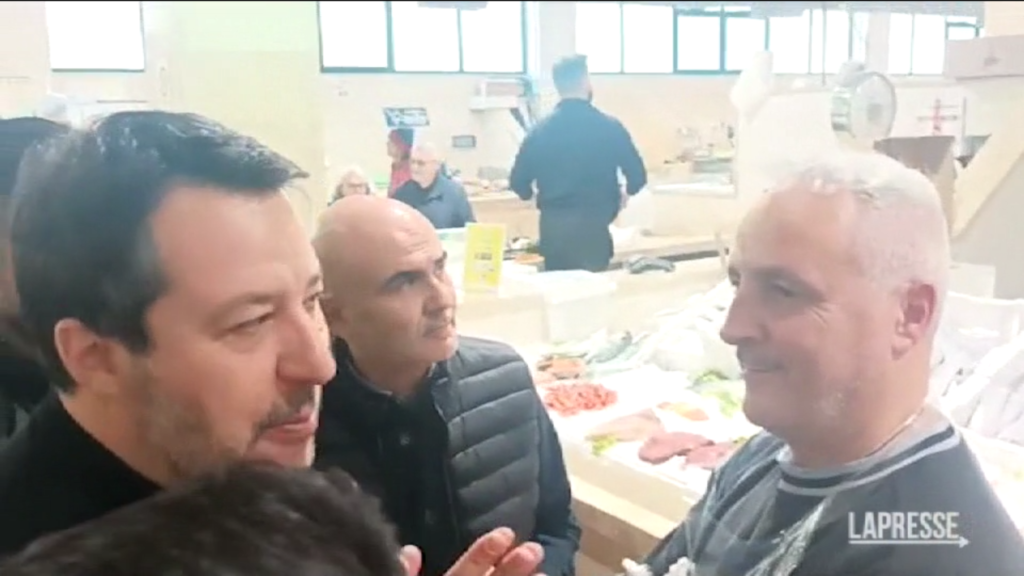 Tour elettorale in Sardegna per Matteo Salvini, in vista delle Elezioni Regionali di domenica 25 febbraio. Il vicepremier e leader della Lega ha fatto tappa anche al mercato di San Benedetto a Cagliari, dando vita a un siparietto. “Ma com’è che i gamberi qua costano meno della metà che a Milano?“, ha chiesto a un pescivendolo. Salvini si è poi intrattenuto con diversi sostenitori, scambiando battute e scattando foto.