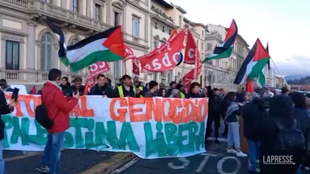 Un migliaio di persone ha partecipato a un corteo di protesta organizzato oggi a Pisa per ribadire la solidarietà alla Palestina e contro la repressione di piazza, dopo gli scontri di piazza dello scorso 23 febbraio tra manifestanti e forze dell’ordine. In testa al corteo uno striscione con su scritto ‘Pisa in piazza contro bombe e manganelli’ e “Pisa non ha paura. Stop al genocidio. Studenti pro Palestina” oltre a bandiere palestinesi e della pace.