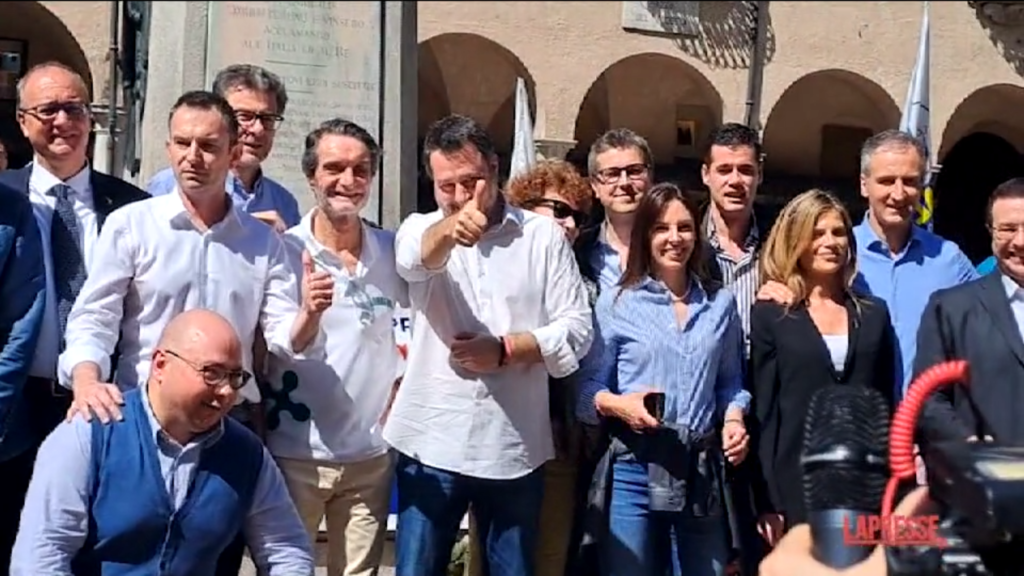 Foto di rito e festeggiamenti sulle note di “Italo disco” in piazza del Podestà a Varese per i 40 anni della Lega. Il leader del Carroccio e vicepremier Matteo Salvini canta la canzone dei The Kolors e ne segue il ritmo.