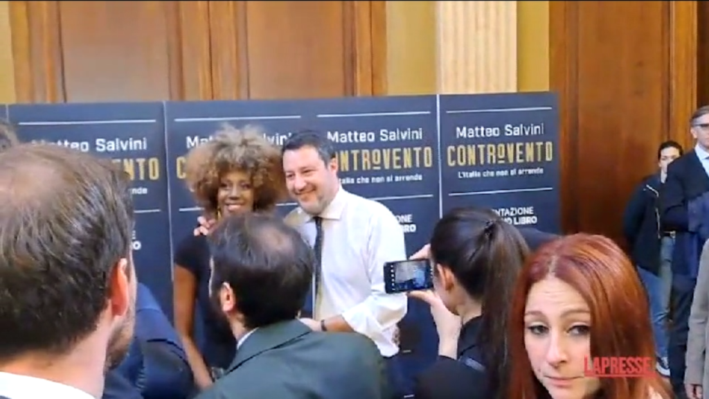 Matteo Salvini ha presentato a Milano il suo libro ‘Controvento. L’Italia che non si arrende’, alla Fondazione Istituto dei ciechi. Presente anche l’ex soubrette Sylvie Lubamba che si è fatta firmare una copia dal vicepremier.