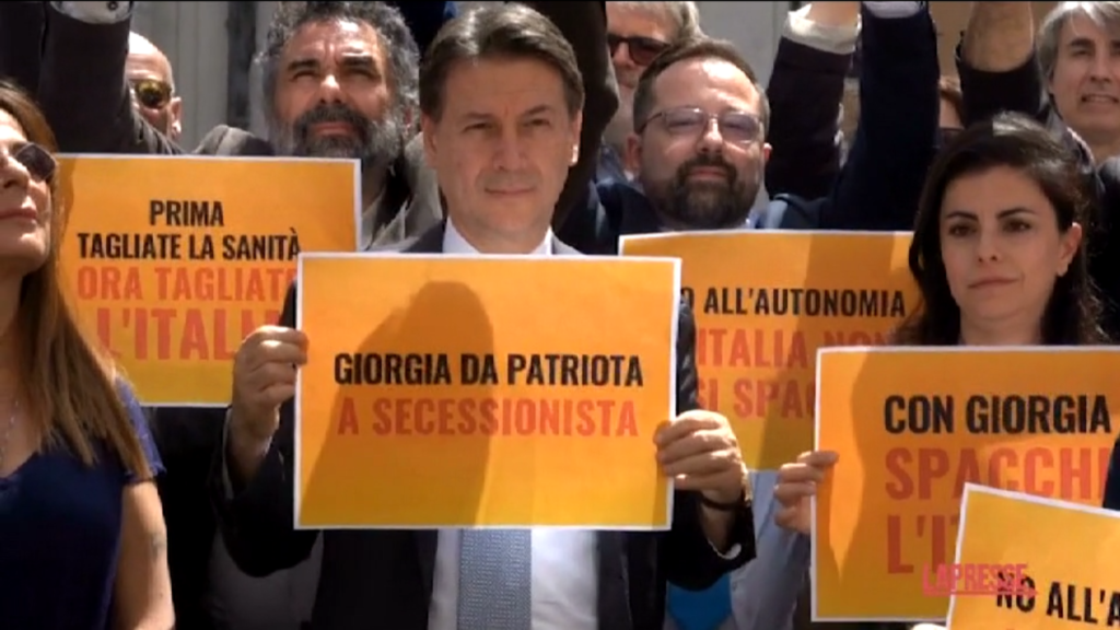 “Condanna le aree più depresse a maggiori tagli, alla Serie C per quanto riguarda ospedali, diritti e servizi”, continua l’ex premier, che poi ribadisce: “Giorgia Meloni sta svendendo l’unità del paese per avere pieni poteri sperando nel premierato. Da patriota a secessionista, la fermeremo e la combatteremo in ogni modo”. Dopo aver parlato anche del patto di stabilità votato in Europa, lasciando piazza Colonna Conte risponde anche a chi gli chiede se questa battaglia sia finalizzata ad ottenere il favore del Sud del paese: “Particolare attenzione è all’Italia intera. Una e indivisibile”.