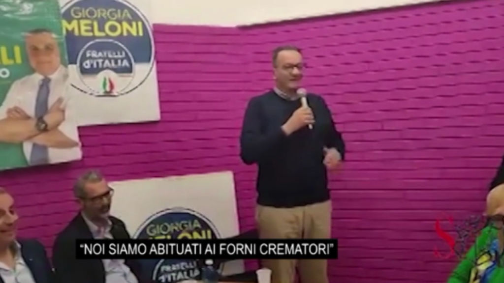 “Noi siamo abituati ai forni crematori“: è una voce fuori campo, che desta le risate dei presenti all’inaugurazione di un comitato elettorale di Fratelli d’Italia a Manfredonia, in provincia di Foggia. La voce è di Giuseppe Marasco, candidato ed eletto nel Consiglio comunale di Manfredonia. Dopo il taglio del nastro del comitato, prende la parola Giannicola De Leonardis, consigliere regionale di FdI. “Scusate se ho tolto la giacca, fa caldo, dovremmo far mettere l’aria condizionata”, dice. È a questo punto che Marasco risponde: “Noi siamo abituati ai forni crematori”. L’inaugurazione è dello scorso 18 maggio, ma il video, postato dal sito ‘Stato quotidiano’ è diventato virale oggi. Il comitato era a sostegno di Ugo Galli candidato sindaco, al ballottaggio il prossimo weekend. In caso di vittoria, Marasco – già materialmente eletto in consiglio – ha fatto sapere che avrà un Assessorato.