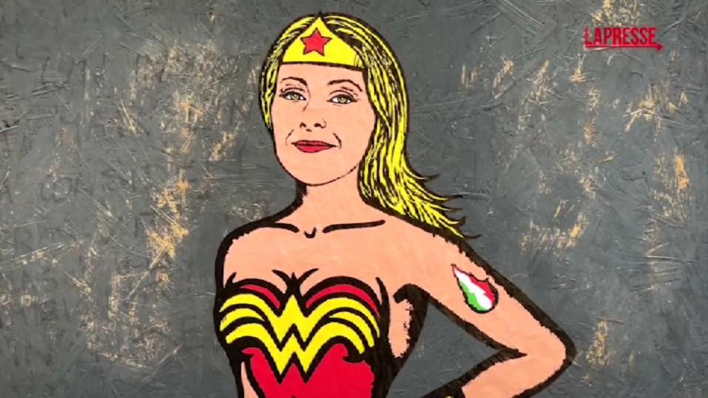 In Via Montenapoleone, a Milano, spunta il murales di Giorgia Meloni ritratta come Wonder Woman. L’opera è dell’artista aleXsandro Palombo. La premier appare nelle vesti della supereroina della DC Comics con gli slip con la bandiera dell’Unione europea e il tatuaggio della fiamma tricolore sul braccio sinistro.