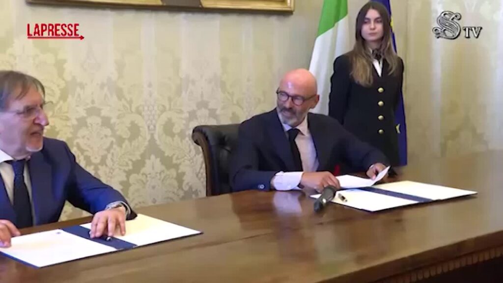 Le immagine della firma della convenzione tra il Senato della Repubblica e gli eredi di Giorgio Napolitano, nella persona del prof. Giulio Napolitano, ai fini della costituzione del fondo ‘Giorgio Napolitano’ presso il polo bibliotecario parlamentare. Dichiarazioni del Presidente del Senato Ignazio La Russa e del Professor Giulio Napolitano.