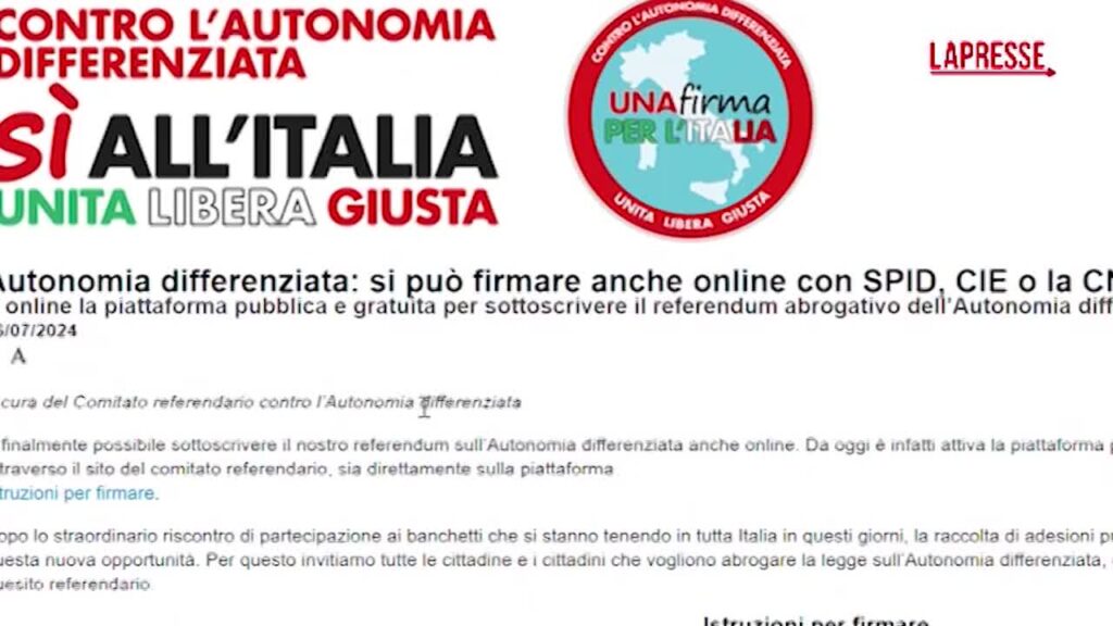 Ha preso il via da poche ore la modalità di raccolta firme online per i quesiti referendari. Lo strumento digitale ha ricevuto infatti la sua approvazione tramite la pubblicazione in Gazzetta Ufficiale ed è già attivo sull’apposita piattaforma del sito web del ministero della giustizia. Ad oggi sono già oltre 150mila le adesioni raggiunte, tramite questo strumento, dalla campagna referendaria contro l’Autonomia Differenziata. La procedura – mostrata nel video tutorial – assicura l’autenticità della firma attraverso l’identificazione della propria identità digitale tramite SPID, CIE, CNS o elDAS. Al termine dell’operazione viene rilasciato un documento PDF che attesta la certificazione della firma. “È una conquista importantissima per la democrazia, per la partecipazione e per l’esercizio dei diritti politici” è il commento a LaPresse del segretario di +Europa, Riccardo Magi, promotore della proposta per le firme digitali: “Sono trascorsi 2 anni e mezzo da quando la nostra norma, approvata nel 2021, prevedeva l’entrata in funzione di questo strumento”. Magi sottolinea anche come “nelle prime ore già decine di migliaia di cittadini abbiano sottoscritto richieste di referendum. È segno che c’è voglia di partecipare e di utilizzare lo strumento del referendum abrogativo, che la costituzione prevede e che molti davano per morto”. L’appello del segretario di +Europa è quindi quello di continuare a firmare per il referendum contro l’autonomia differenziata, ma anche per le altre proposte disponibili sulla piattaforma, quali quelli interessati a modificare “le parti peggiori della legge elettorale Rosatellum”.