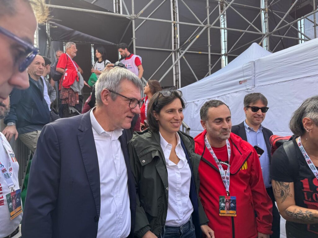 Un abbraccio e uno scambio di battute con gli operai. Incontro tra la segretaria del Pd Elly Schlein e il leader M5s Giuseppe Conte alla manifestazione in piazza del Popolo dei sindacati metalmeccanici sul settore Auto. Gli operai hanno chiesto il sostegno dei due maggiori sindacato dell’opposizione. “Potete farlo solo voi, potete farlo insieme”, ha chiesto loro un sindacalista della Fiom dello stabilimento di Mirafiori, “siamo pronti a sostenervi”. Conte e Schlein hanno ascoltato le richieste. La segretaria dem ha ricordoyo che le opposizioni stanno lavorando sul settore automotive con una mozione unitaria.