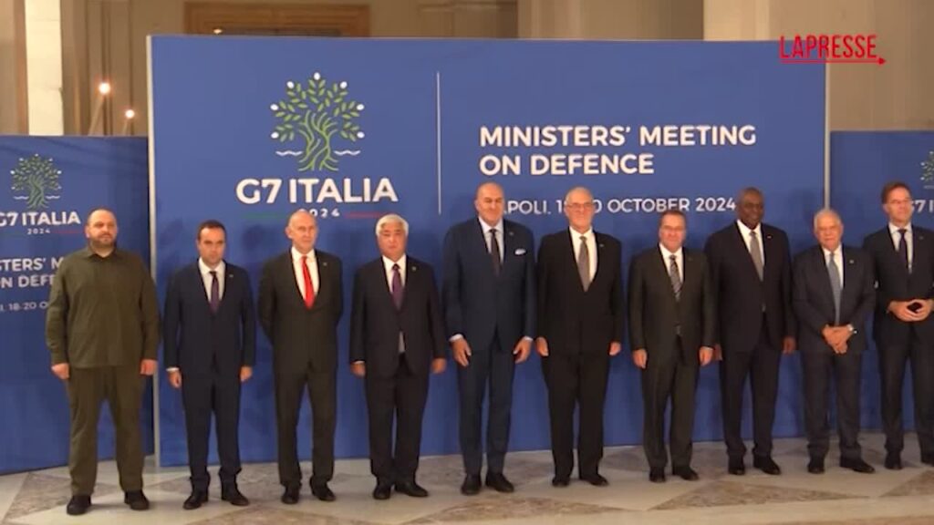 Foto di famiglia al coperto per i ministri della Difesa del G7 riuniti a Napoli. Il maltempo che da due giorni si è abbattuto sul capoluogo partenopeo ha costretto gli organizzatori a rinunciare alla tradizionale foto di famiglia all’aperto, sul terrazzo del Palazzo Reale con vista sul golfo di Napoli e sul Vesuvio. La foto è stata quindi scattata negli interni della reggia borbonica. Hanno preso parte alla foto di famiglia: Guido Crosetto, ministro della Difesa italiano; John Healey, segretario di Stato per la Difesa del Regno Unito; Bill Blair, ministro della Difesa del Canada; Boris Pistorius, ministro federale della Difesa della Germania; Gen Nakatani, ministro della Difesa del Giappone; Lloyd Austin, Segretario della Difesa degli Stati Uniti d’America; Sebastien Lecornu, ministro delle Forze armate della Francia; Mark Rutte, segretario generale della Nato; Josep Borrell, Alto rappresentante dell’Unione Europea per gli affari esteri e la politica di sicurezza. Con loro anche Rustem Umerov, ministro ucraino della Difesa, che partecipa alla sessione pomeridiana che ha come focus proprio la guerra in Ucraina.