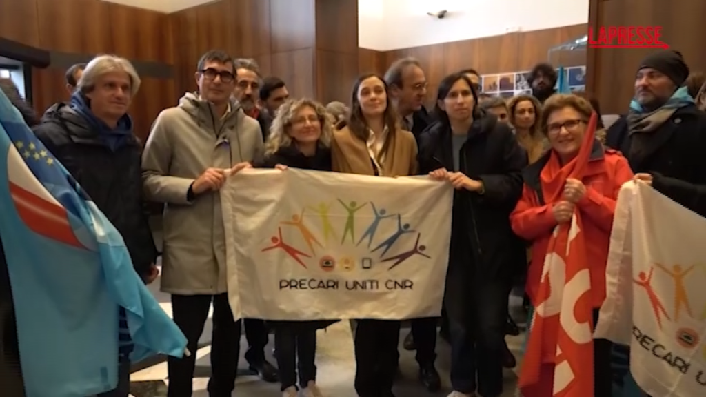 I segretari del Pd e Avs, Schlein, Fratoianni e Bonelli sono andati oggi al Cnr occupato, a Roma, da circa una settimana dai lavoratori. Una protesta che nasce dopo il fallito incontro con la presidente del Cnr, Maria Chiara Carrozza nel quale si è sostanzialmente chiusa la porta per i circa quattromila precari che da anni lavorano nel Consiglio nazionale della ricerca. “Siamo qui per sostenere la vostra lotta – ha detto la segretaria del Pd, Elly Schlein – ma siamo qui anche per trovare soluzioni che devono essere strutturali. Non è la prima volta che protestate, ci sono norme (riforma Madia) che dal 2017 vengono inapplicate sulla stabilizzazione dei precari. Tutto questo è un disegno ben preciso da parte del governo, lo stesso disegno che adoperano nella Sanità”. “Quando andremo al governo, e ci andremo – ha aggiunto Fratoianni – un impegno possiamo prenderlo già da ora: cambiare le priorità di questo Paese. Evitare di spendere soldi, ad esempio, per le armi e investire nella ricerca”. “E’ necessario – ha poi chiarito Angelo Bonelli – aprire un dibattito sulla ricerca nel nostro Paese. E’ necessario muoversi quindi su due fronti – ha chiarito – quello sulla Manovra di bilancio per trovare le risorse ma anche quello in sede parlamentare per aprire un serio dibattito su dove questo Paese vuole andare”.