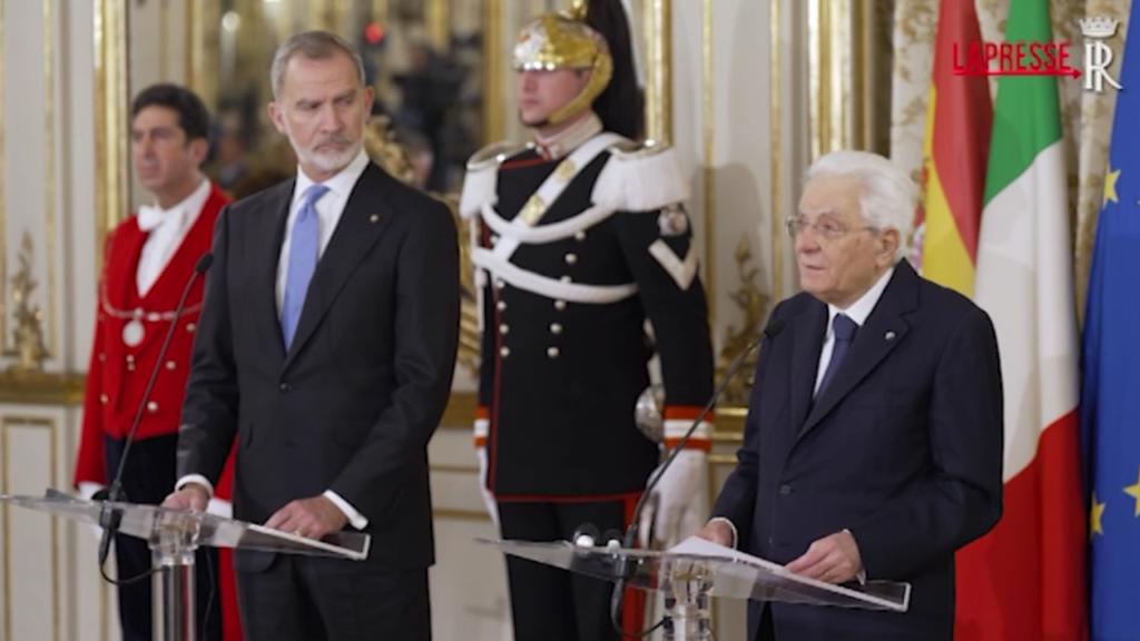 Sergio Mattarella ha accolto al Quirinale il re Filippo VI e la regina Letizia di Spagna. “Abbiamo ricordato quanti siano positivi e dinamici gli ambiti della nostra cooperazione, quella governativa, parlamentare e tra le nostre società civili”, ha detto il presidente della Repubblica nel suo discorso. “Sono eccellenti anche i rapporti economici, segnale ne è il livello di interscambio: ben 66 miliardi di euro”, ha aggiunto il capo dello Stato. “Abbiamo condiviso una riflessione sul futuro che l’Unione europea dovrà avere in un contesto così insidioso. La nuova legislatura europea è chiamata a un compito di grande impegno ma ineluttabile, per una riforma complessiva dell’Ue che riguardi i metodi decisionali, verso il completamento del mercato unico e finanziario, procedendo verso una vera e propria difesa europea. Abbiamo sottolineato anche il tema dell’allargamento e del nuovo Patto migrazione e asilo“, ha detto ancora Mattarella che poi si è soffermato sul cambiamento climatico. “Abbiamo un sentire comune sugli effetti dei cambiamenti climatici. Ho rinnovato a sua maestà il cordoglio mio e dell’Italia per le vittime della regione di Valencia, colpita da devastazioni che purtroppo anche l’Italia conosce. E’ indispensabile un’accelerazione nella lotta al cambiamento climatico verso una transizione energetica efficace. Su questo Spagna e Italia sono esempio di una collaborazione proficua”.