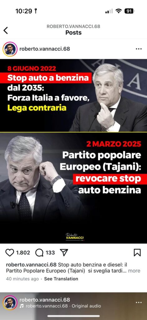 “Otto giugno 2022, stop auto a benzina dal 2035: Forza Italia a favore, Lega contraria. Due marzo 2025 Partito popolare europeo (Tajani) revocare stop auto a benzina”. E’ il post che era stato pubblicato in mattinata, poi rimosso, dall’eurodeputato della Lega Roberto Vannacci. Reazione immediata da parte da parte di Forza Italia.