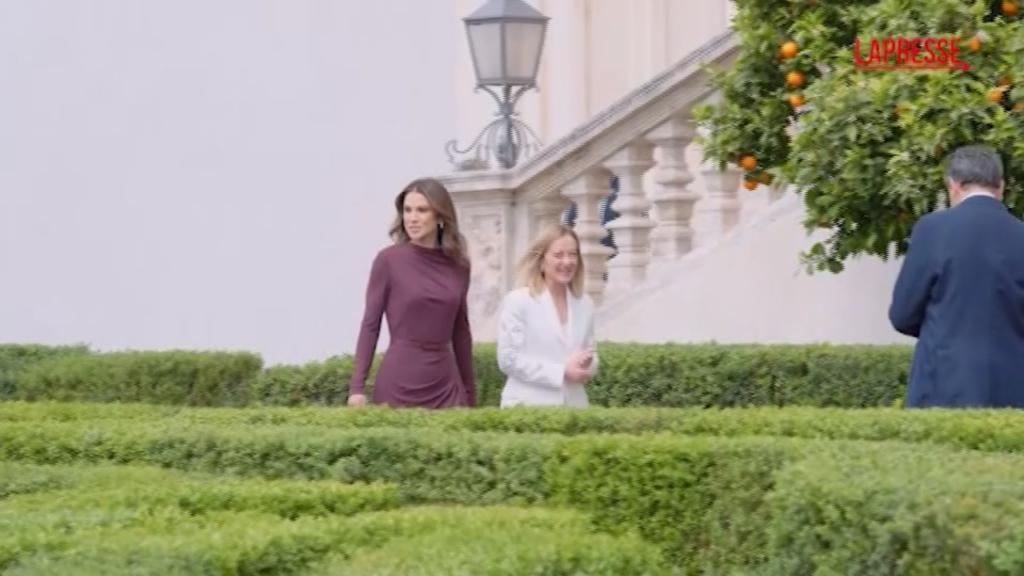 La regina Rania di Giordania accolta da Giorgia Meloni a Villa Pamphilj. L’incontro con la premier al Casino del Bel Respiro è durato circa un’ora.
