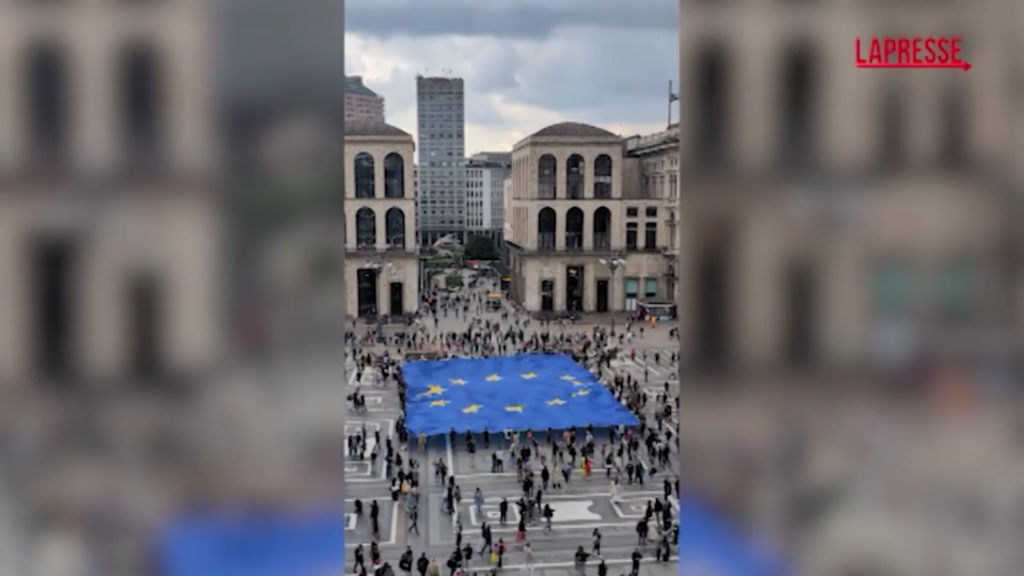 In occasione dello Europe Day 2025 i Giovani delle Acli di Milano, in collaborazione con l’Ufficio a Milano del Parlamento europeo, hanno organizzato un flash mob per sventolare insieme, in Piazza del Duomo, la bandiera più grande d’Europa.