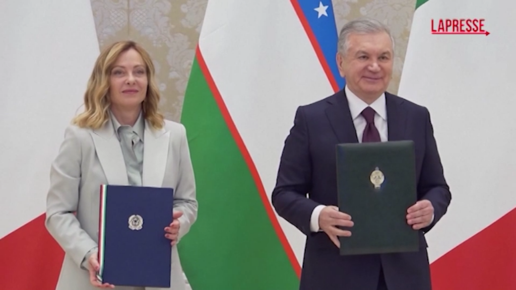 La premier Giorgia Meloni ha effettuato una visita di Stato di due giorni a Samarcanda, in Uzbekistan, dove ha firmato nuovi accordi commerciali per gli investimenti tra i due Paesi. Mercoledì sera Meloni è stata accolta dal presidente uzbeko Shavkat Mirziyoyev, che le ha fatto visitare la piazza Registan e le ha presentato artisti e artigiani locali. Mercoledì mattina il primo ministro italiano e il presidente uzbeko hanno poi tenuto un incontro bilaterale.