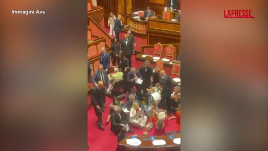 Sit-in di protesta dell’opposizione al Senato alla ripresa dei lavori sul dl Sicurezza. Alcuni esponenti di M5S, Avs e Pd si sono seduti per terra nell’emiciclo dando le spalle ai banchi del governo e gridando “vergogna” per protestare contro le norme introdotte dal decreto, blindato con la fiducia. Il presidente di palazzo Madama, Ignazio la Russa non vuole sospendere la seduta e invita a lasciare intervenire Carlo Calenda di Azione. Alla fine viene chiesta la riunione della conferenza dei capigruppo e La Russa sospende i lavori.